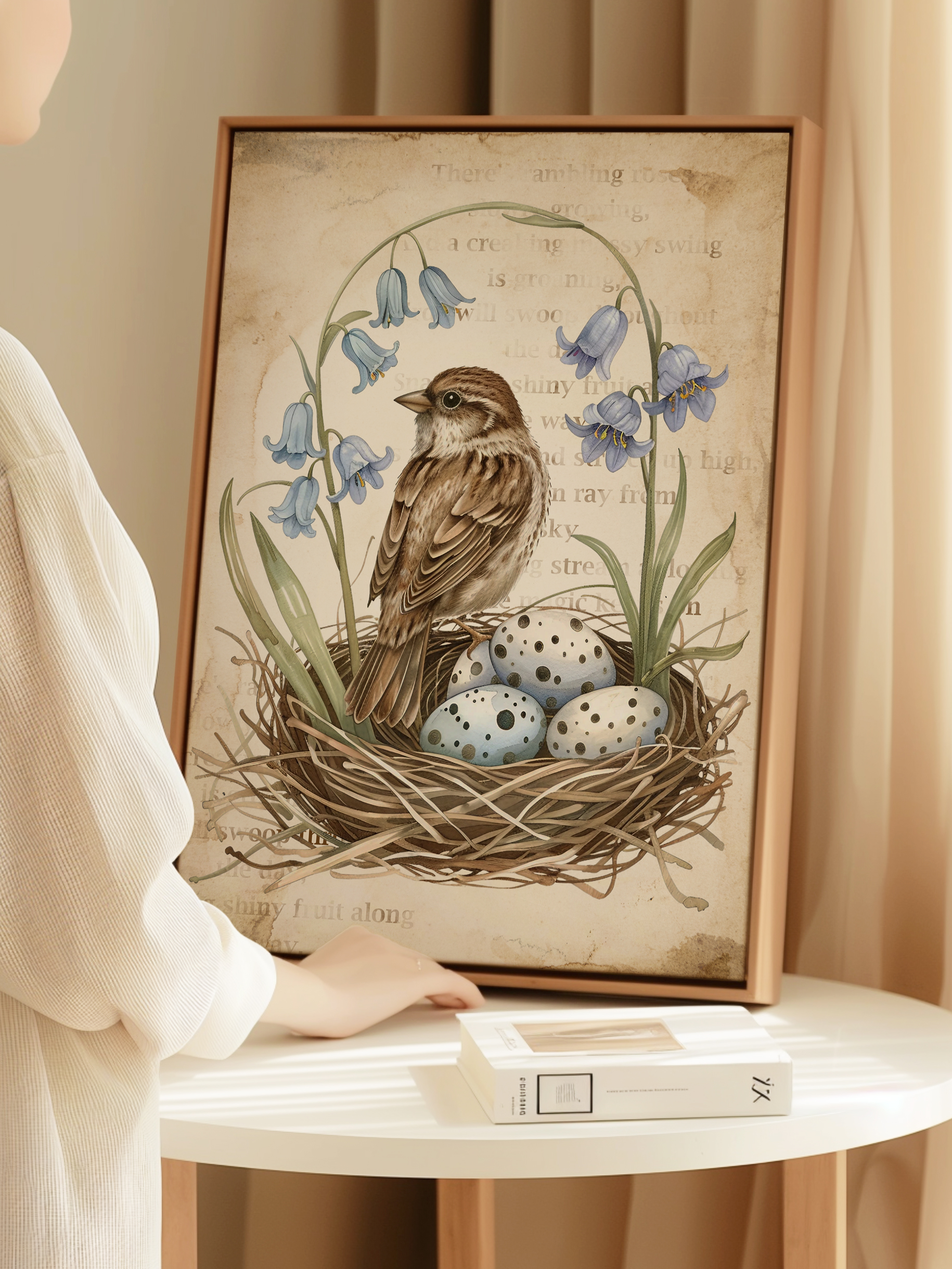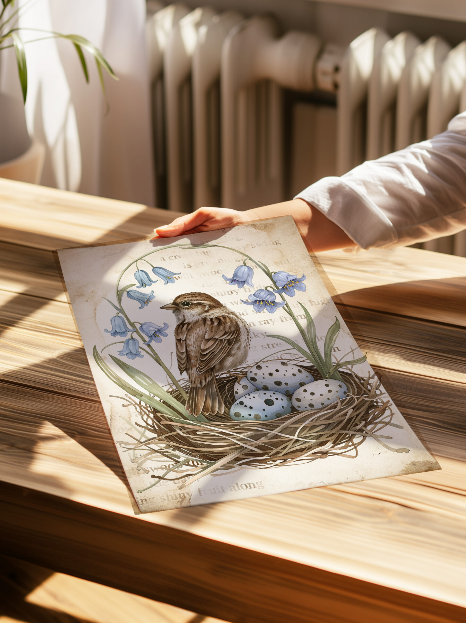 PLAKAT Z PTASZKIEM I GNIAZDEM Z JAJKAMI, PLAKAT Z PTASZKIEM